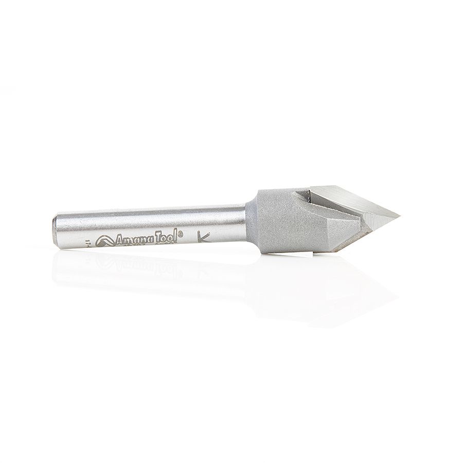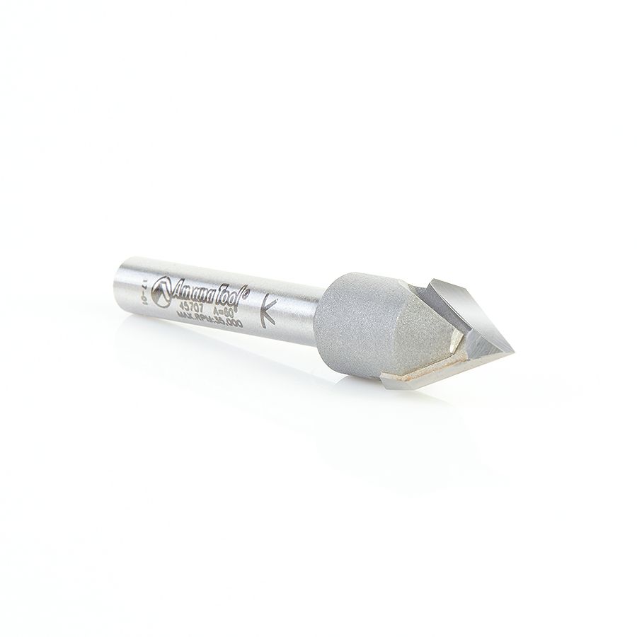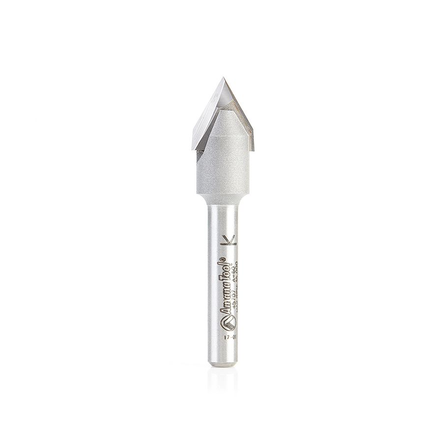 Amana Tool 45707 Carbide Tipped "Zero Point" V-Groove 60 Deg x 1/2 Dia x 13/32 x 1/4 Inch Shank