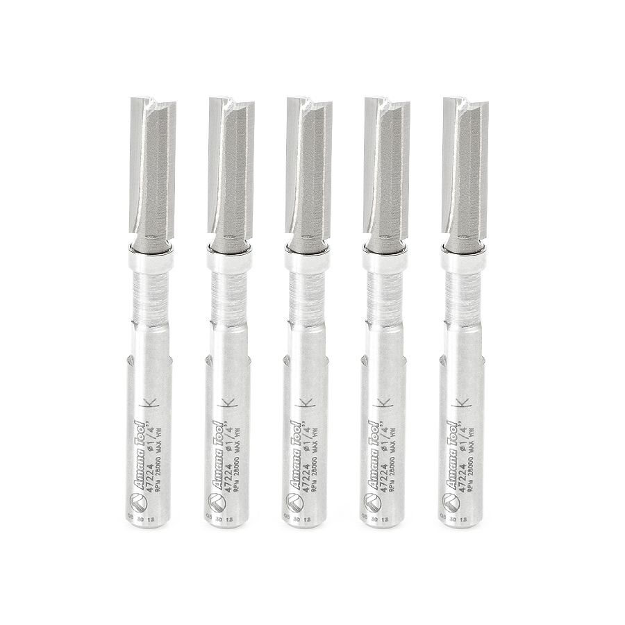 Amana Tool 47224-5 5 Pack Miniature Flush Trim Plunge Template 1/4 Dia x 3/4 x 1/4 Inch Shank Carbide Tipped Router Bits with Mini 1/4 Dia Upper Ball Bearing