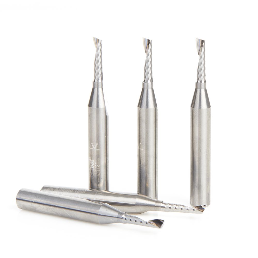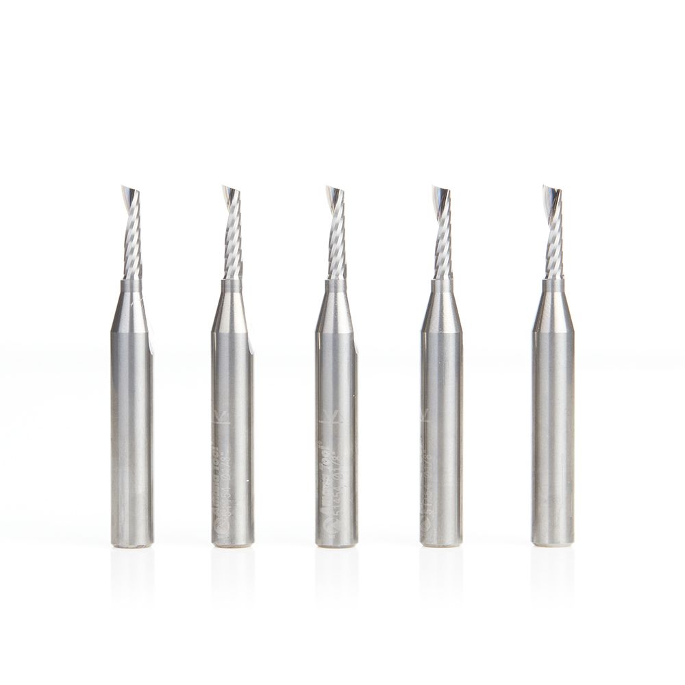 Amana Tool 51454-5 5-Pack Solid Carbide CNC Spiral 'O' Single Flute, Aluminum Cutting 1/8 Dia x 1/2 x 1/4 Shank x 2 Inch Long Up-Cut Router Bit