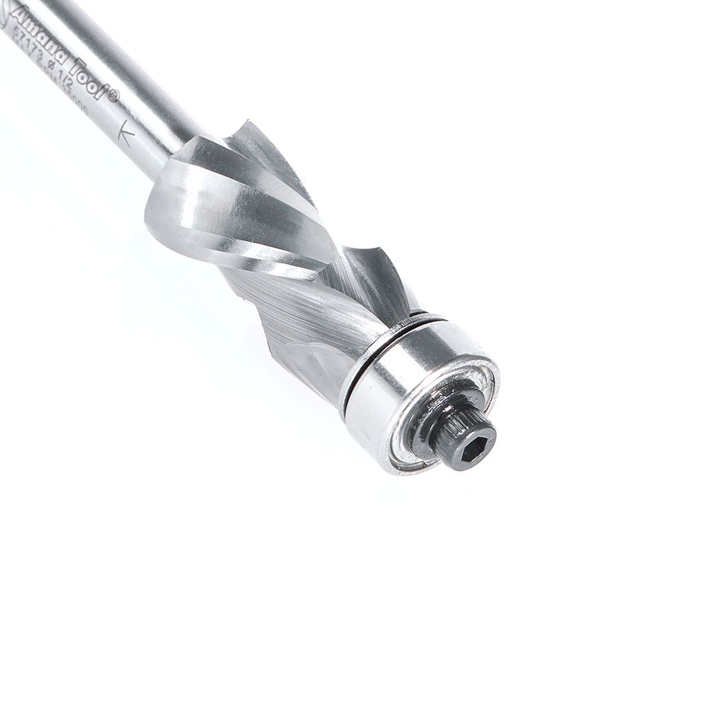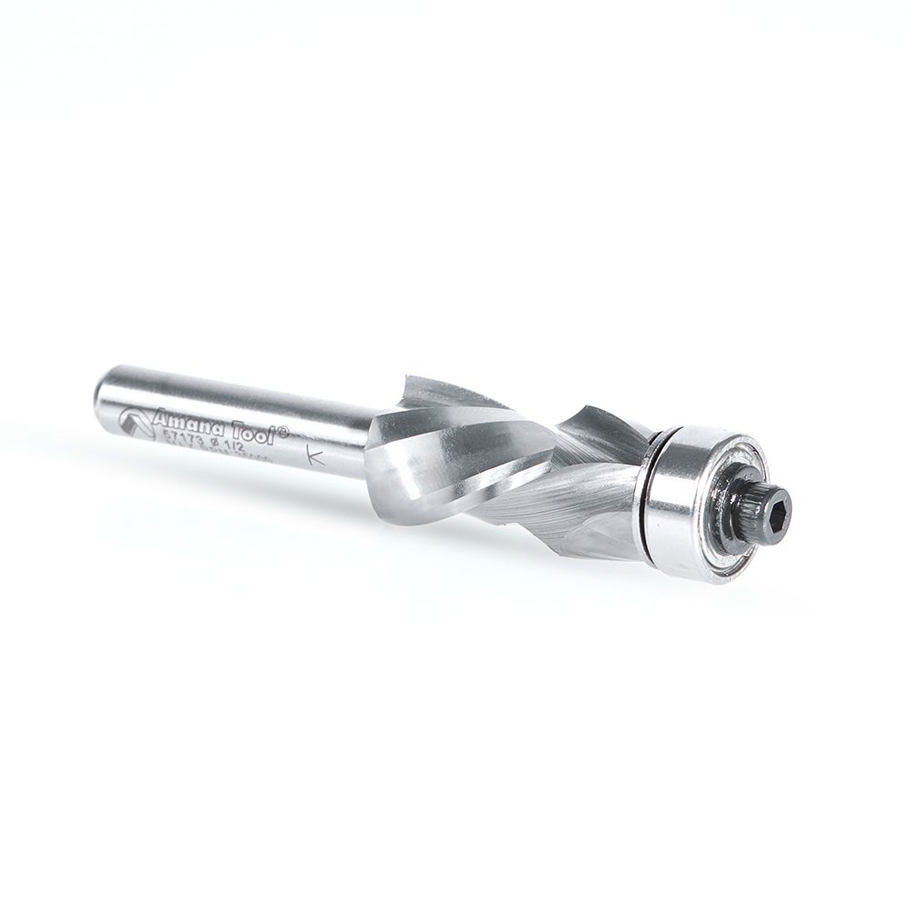 Amana Tool 57173 Solid Carbide (Brazed To Steel Shank) Spiral Flush Trim Compression 1/2 Dia x 1 x 1/4 Inch Shank With Lower Ball Bearing