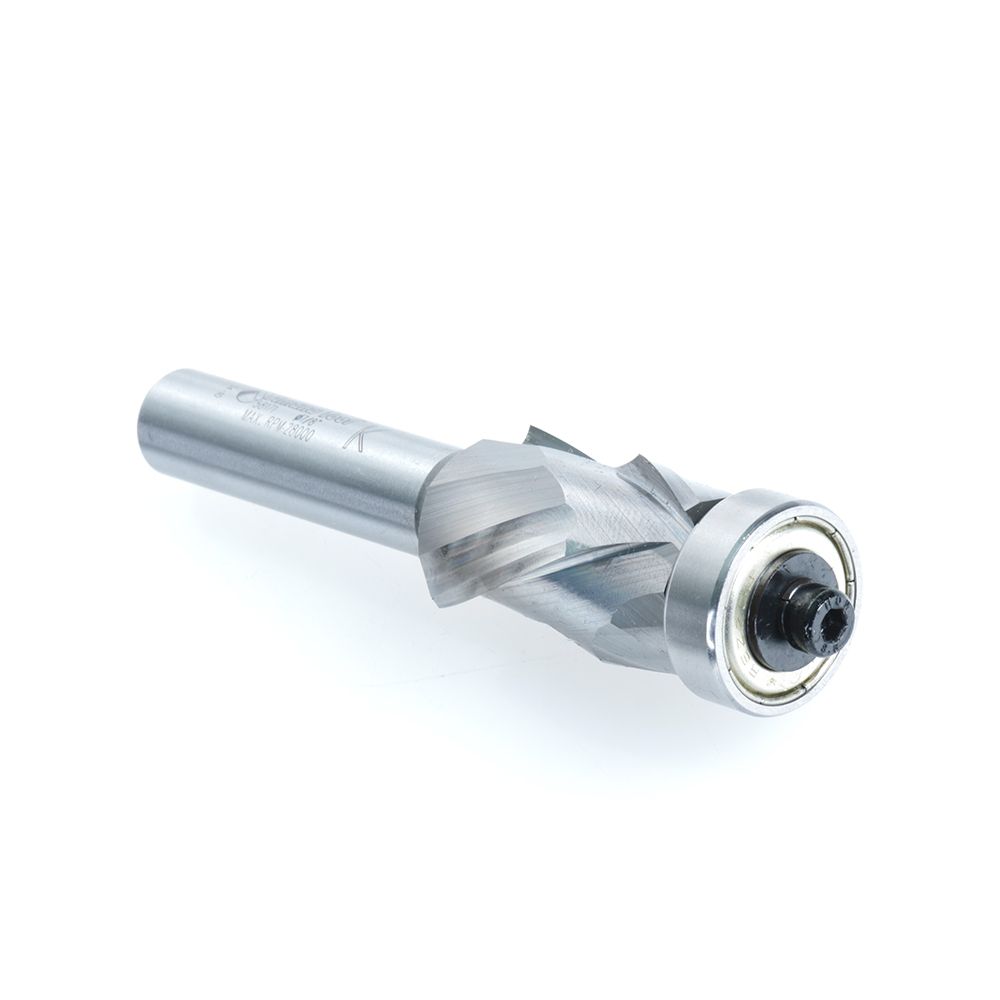 Amana Tool 58171 Solid Carbide (Brazed To Steel Shank) Spiral Flush Trim Compression 7/8 Dia x 1-3/8 x 1/2 Inch Shank With Lower Ball Bearing