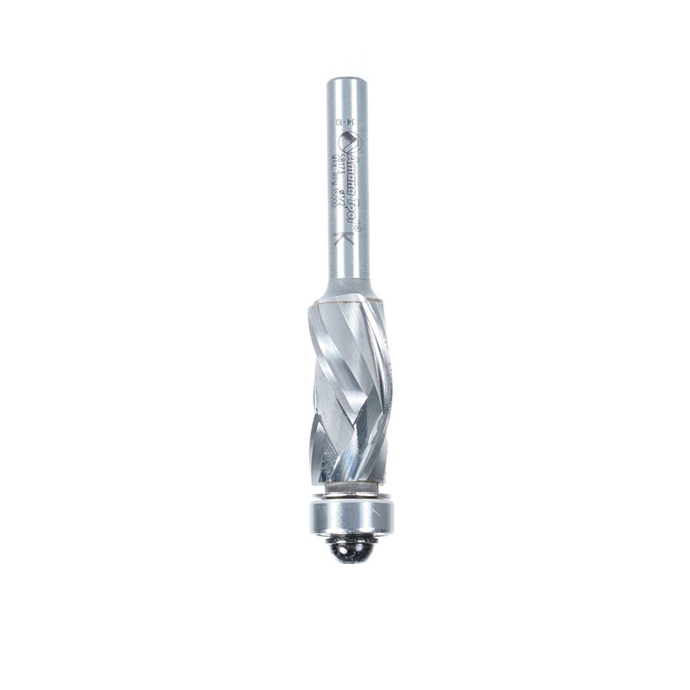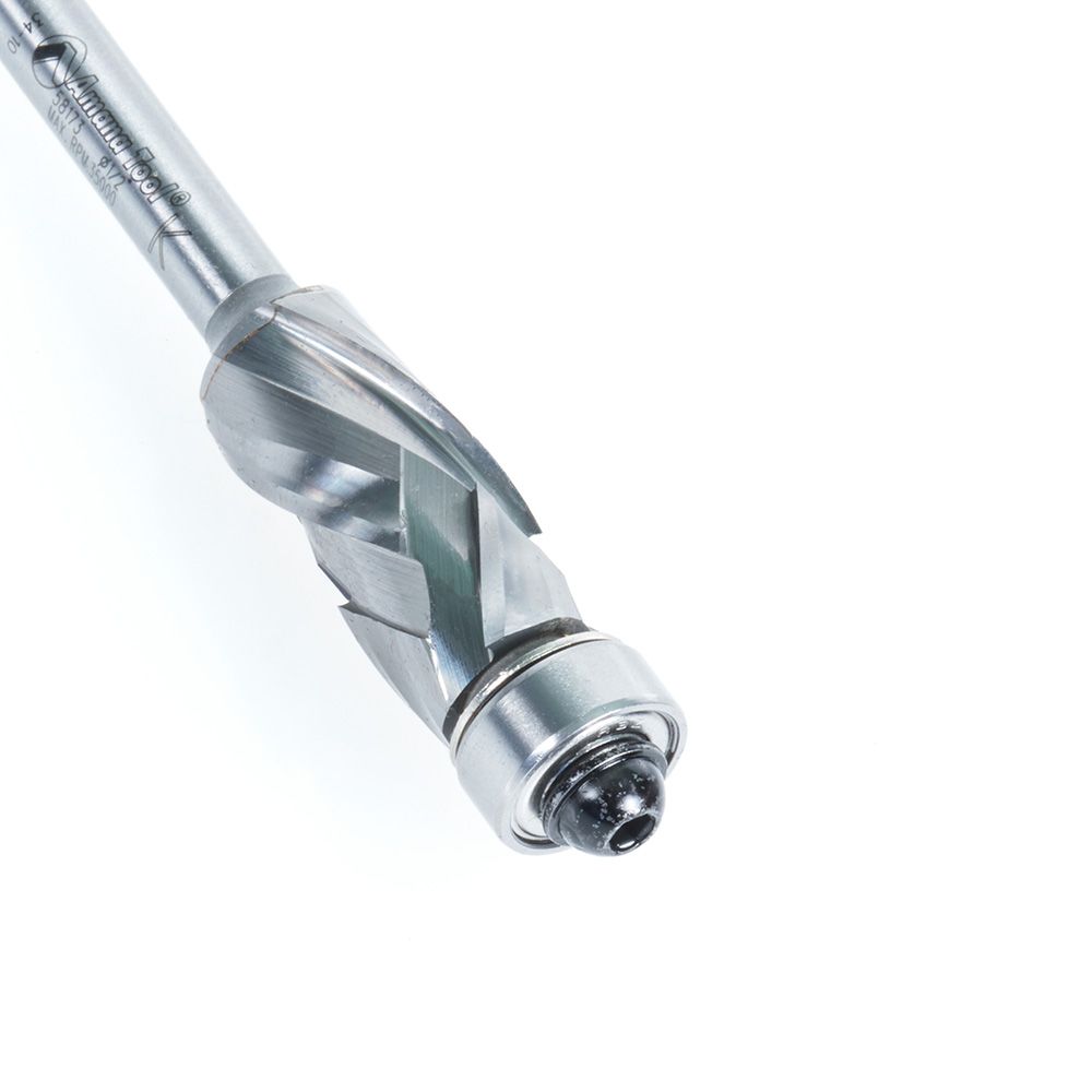Amana Tool 58173 Solid Carbide (Brazed To Steel Shank) Spiral Flush Trim Compression 1/2 Dia x 1 x 1/4 Inch Shank With Lower Ball Bearing