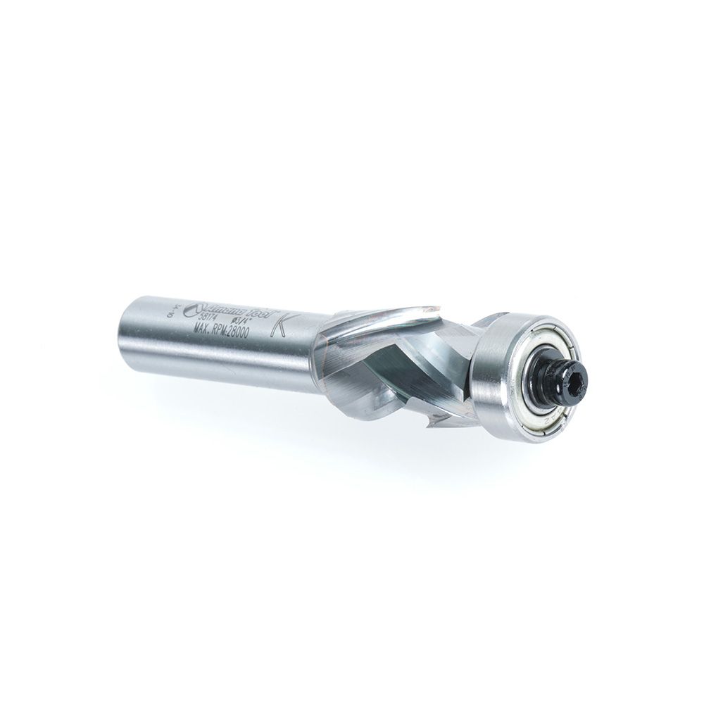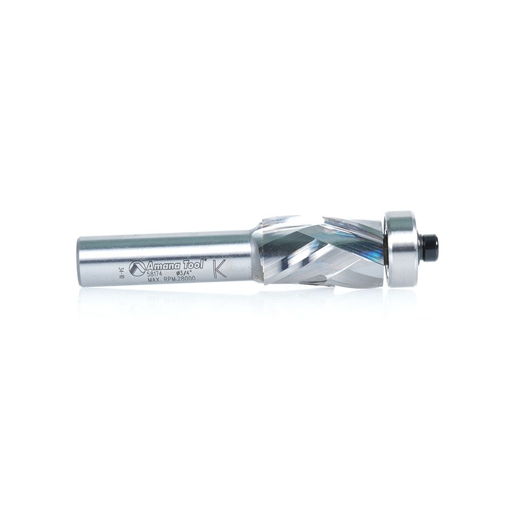 Amana Tool 58174 Solid Carbide (Brazed To Steel Shank) Spiral Flush Trim Compression 3/4 Dia x 1-9/64 x 1/2 Inch Shank With Lower Ball Bearing