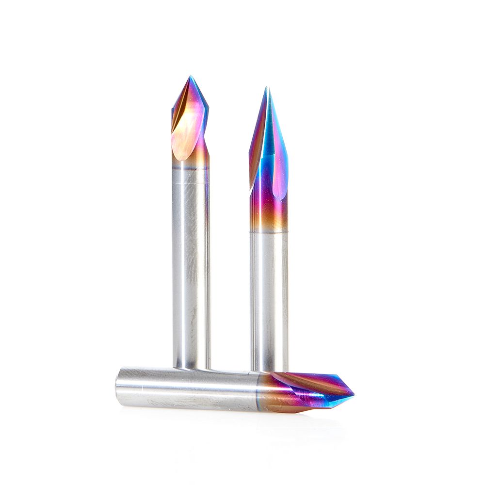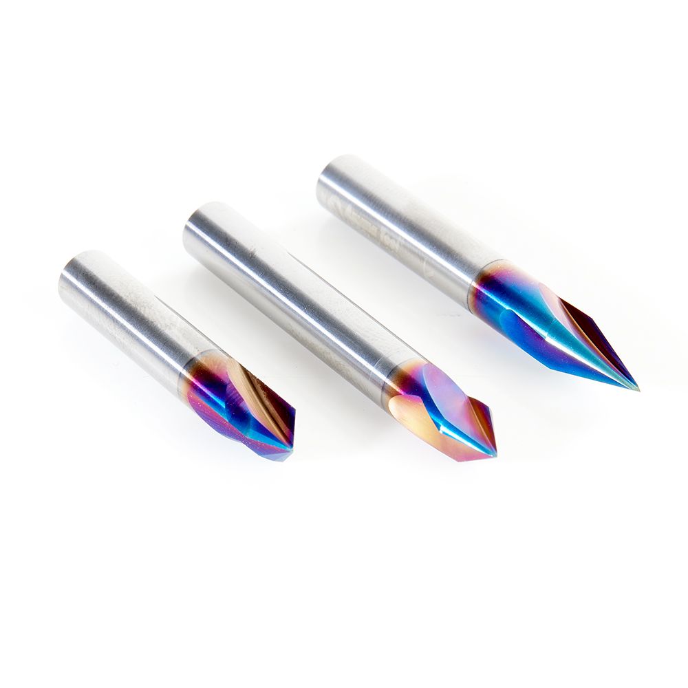 Amana Tool AMS-310-K 3-Pc Spektra™ Extreme Tool Life Coated CNC 30°, 60° & 90° V-Groove, Signmaking & Lettering, 1/4 Inch Shank Pack