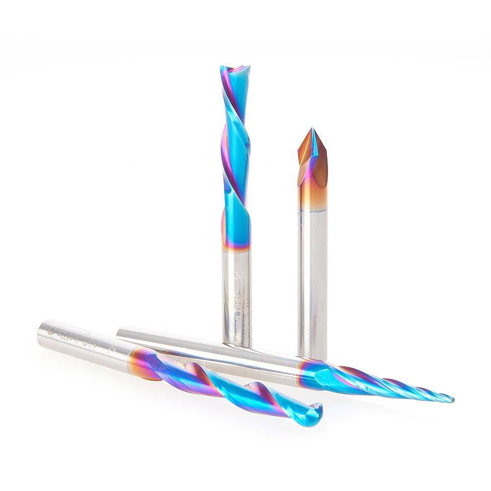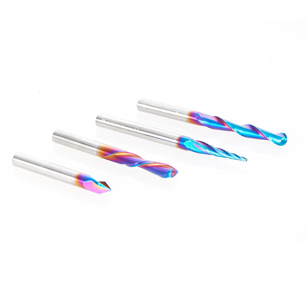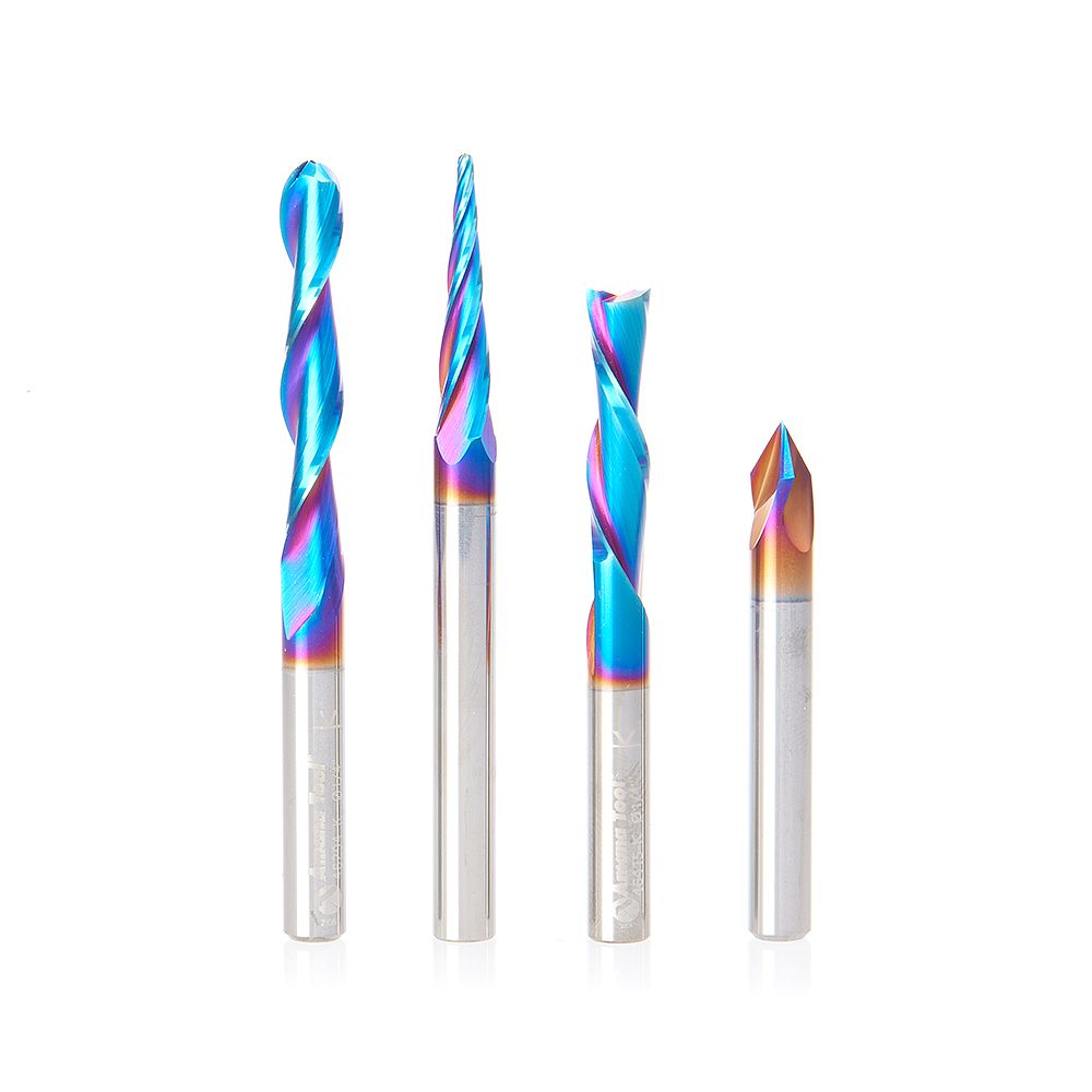 Amana Tool AMS-314-K 4-Pc Spektra™ Extreme Tool Life Coated CNC Signmaking & Engraving, 1/4 Inch Shank Pack