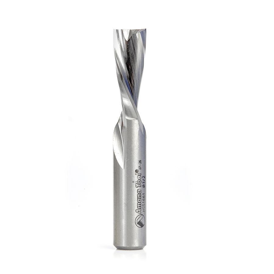 Amana Tool HSS1661 High Speed Steel (HSS) Double Flute Spiral Aluminum Cutting 1/2 Dia x 1-1/4 x 1/2 Inch Shank Down-Cut Router Bit